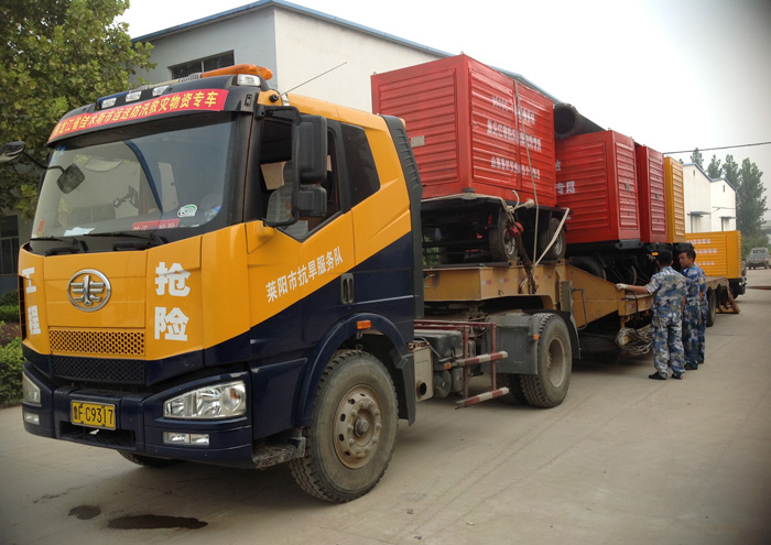 正在装运发往黑龙江紧急救灾的大流量移动泵站